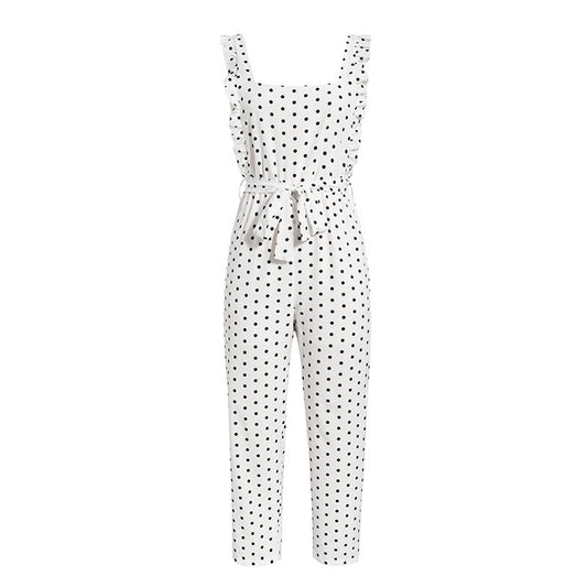 Design Sense Chiffon Jumpsuit - Combinaison Sans Manches à Pois pour Femme