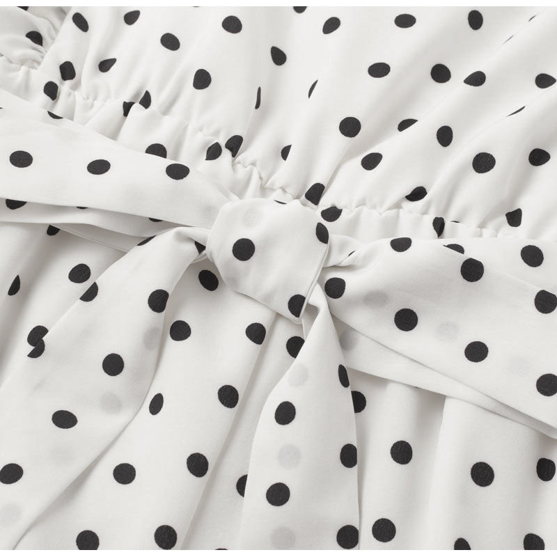 Ajoutez une touche chic et estivale à votre garde-robe avec cette élégante combinaison à pois.